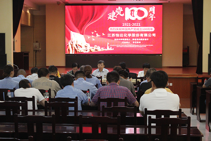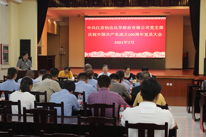 為熱烈慶祝中國(guó)共產(chǎn)黨成立100周年,江蘇怡達(dá)化學(xué)股份有限公司黨支部于2021年7月3日在公司職工之家組織召開(kāi)了黨員大會(huì),本次會(huì)議由公司黨支部委員蔡國(guó)慶同志主持,大會(huì)在莊嚴(yán)的國(guó)歌聲中開(kāi)幕。