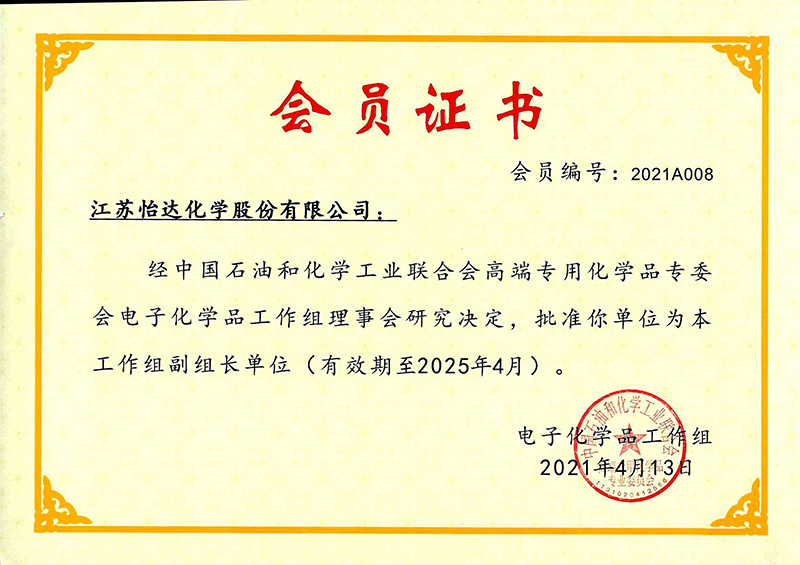 江蘇怡達(dá)被評(píng)為高端專用電子化學(xué)品組副組長單位